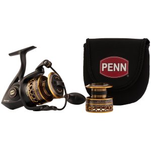 The Penn Battle Spinning Reel Kit pairs the high-performing Battle II reel with a spare anodized aluminum spool and a durable neoprene reel cover. The extra spool gives anglers the added convenience of being able to quickly switch between various line types. While the high-quality neoprene reel cover protects the reel from scrapes and dings while being transported. The Battle II Spinning Reel offers a durable design. sleek cosmetics. and a silky smooth HT-100 drag as just a few of the many reasons why so many anglers use it. The Full Metal Body construction allows the reel to maintain precision gear alignment under severe punishment. With the Superline Spool. no backing is needed because of the rubber gasket that keeps superlines from slipping. An unbeatable value for the price point!