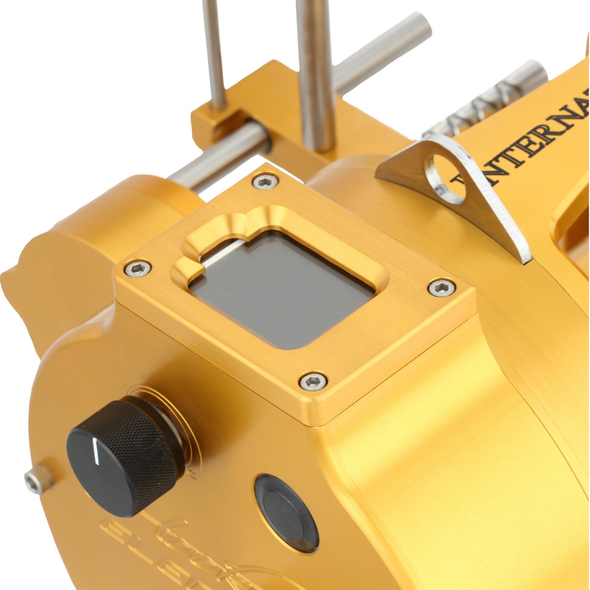 The PENN International Auto-stop reel includes all of the speed and power of the Standard reels. but with an added level-wind and digital line counter. What sets this reel apart from the rest is its Bluetooth connectivity. In place of the RF remote. the addition of Bluetooth connectivity means that now you can see your line counter. RPMs and control the speed from your iPhone or iPad. Function requires Hooker Electric’s ReelTime app available at the Apple App Store. Desktop requires iTunes to download app. Built from Aircraft-grade Aluminum construction right here in the USA. these reels are built tough to last a lifetime. .