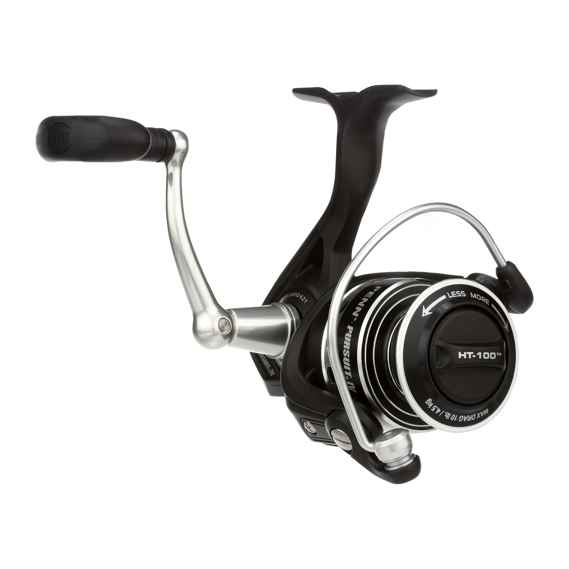 The PENN Pursuit IV features a durable construction and the smooth gear system anglers expect from PENN. This reel features an ultra lightweight. corrosion-resistant graphite body and powerful HT-100 drag system making the Pursuit IV a great value for the money for saltwater anglers. Available in six sizes from 2500 to 8000. the Pursuit IV has a reel for most fisheries. The Instant Anti-Reverse bearing eliminates even the slightest rotor back play for instant hook-ups every time. while the 4 sealed stainless steel ball bearings provide smooth retrieves.