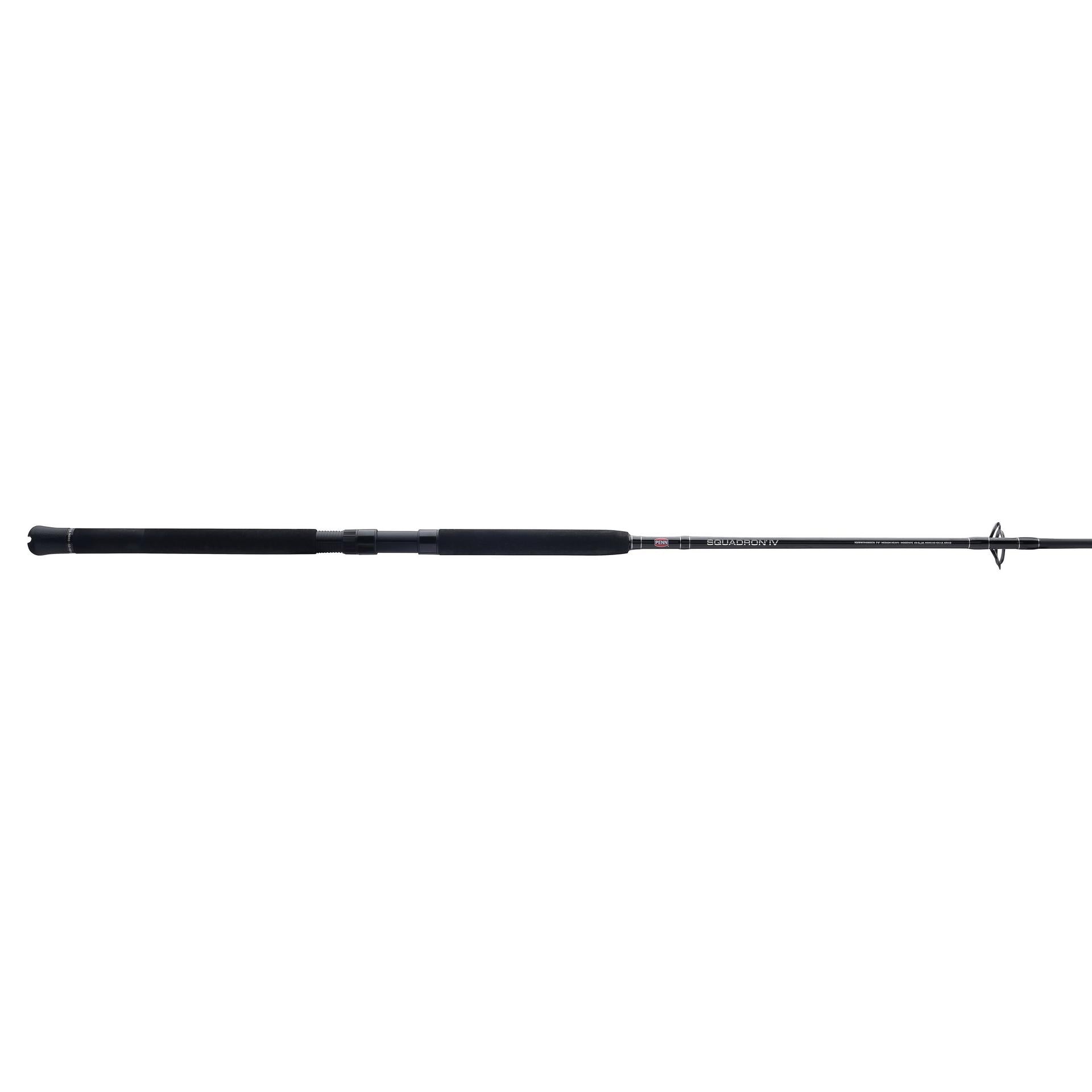 The Penn Squadron IV Boat rods are built for anglers who need durability and power for offshore and nearshore fishing. Constructed with fiberglass reinforced blanks. these rods offer exceptional strength and resilience. making them capable of handling tough fish and challenging conditions. The rods are outfitted with Penn Dura-Guides. which ensure smooth line flow while offering excellent durability and resistance to wear. A heavy-duty graphite reel seat provides a secure and sturdy mounting for reels. while rubber gimbals enhance comfort and provide a firm grip during intense battles with fish. Designed to withstand the demands of the toughest saltwater fishing. the Penn Squadron IV Boat rods offer a perfect balance of strength. reliability. and performance.